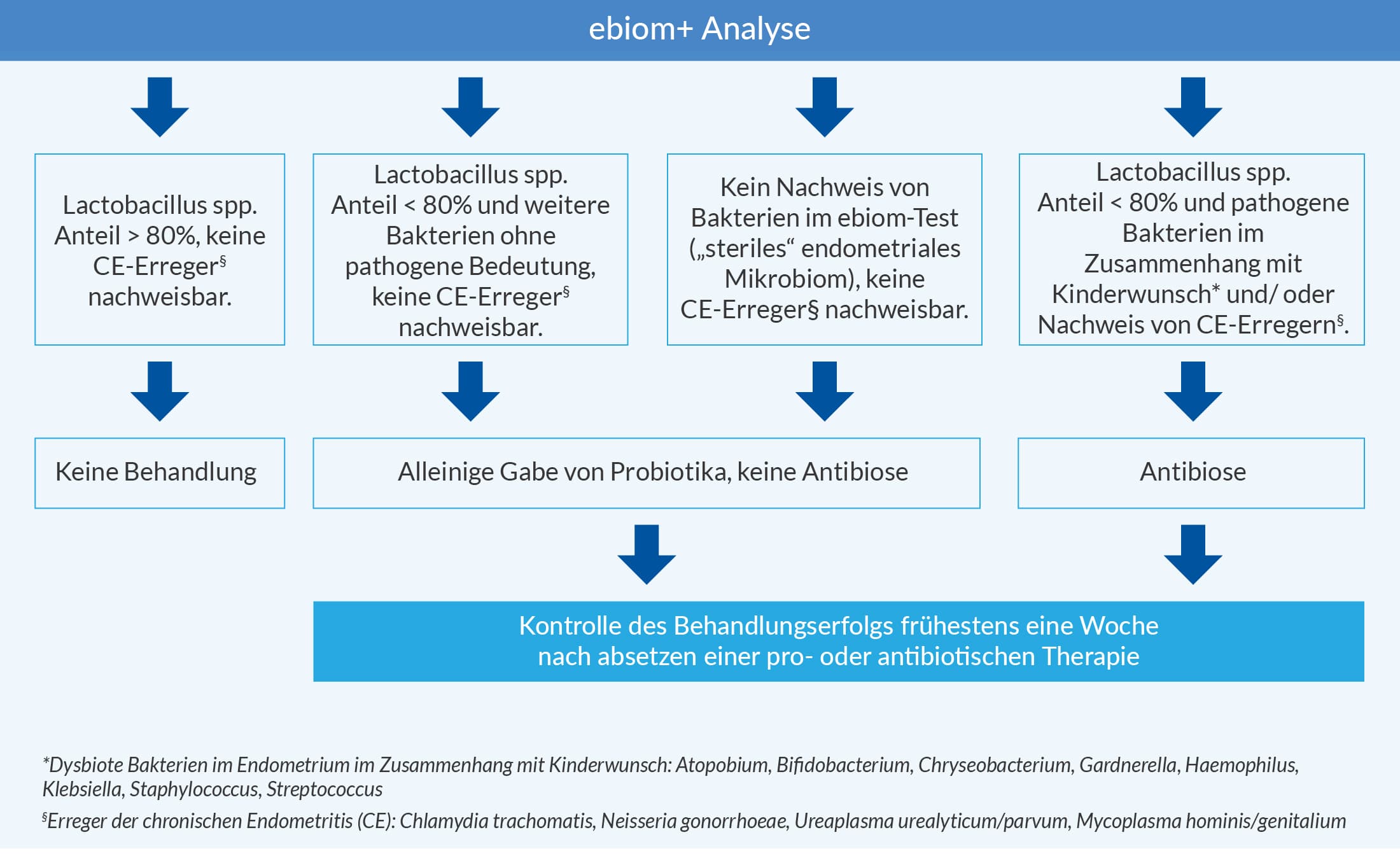 Eine Behandlung pathogener Bakterien mit Probiotika und/oder Antibiotika ist in Abstimmung mit der behandelnden Ärztin möglich. Unser ebiom-Befund enthält Hinweise zu möglichen therapeutischen Maßnahmen.