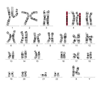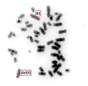 Das Wolf-Hirschhorn-Syndrom (WHS) ist gekennzeichnet durch eine Kombination aus charakteristischen äußeren Merkmalen, angeborenen Fehlbildungen, schwerer Entwicklungsverzögerung und Minderwuchs. Oft ist bereits beim Neugeborenen oder kleinen Säugling eine Blickdiagnose möglich. Die Patienten haben einen weitenAugenabstand, eine breite Nasenwurzel, hochgebogene Augenbrauen, nach außen unten verlaufende Lidachsen, Strabismus divergens, häufig Iriskolobome und LKG-Spalten, Ohrmuscheldysplasie, Herz- und Nierenfehlbildungen, bei Jungen Hypospadie. Etwa 80% der Patienten haben Krampfanfälle. Das WHS wird verursacht durch unterschiedlich große Deletionen des terminalen Kurzarms von Chromosom 4 (4p16.3). Kleinere Deletionen (bis 3,5 Mb) sind mit einer leichteren Ausprägung ohne Fehlbildungen verbunden, mittlere (5 bis 18 Mb) mit dem „klassischen“ WHS, sehr große (22-25 Mb) mit einer sehr schweren Ausprägung, wobei keine Ähnlichkeit mit dem WHS besteht. Beim klassischen WHS sind die Deletionen oft bereits bei der konventionellen Chromosomenanalyse zu erkennen. Es kommen auch interstitielle Deletionen mit erhaltener Subtelomerregion vor. Zu 85 bis 90% entstehen die Deletionen neu, der Rest beruht auf chromosomalen Strukturumbauten, die in balancierter Form bereits bei den Eltern vorliegen können. Die Häufigkeit wird mit 1:20.000 bis 1:50.000 angegeben.