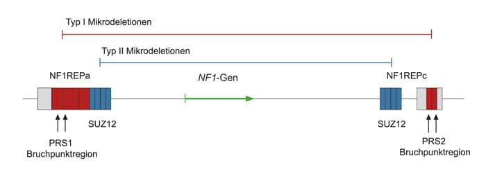 Bis zu 10% aller pathogenen Varianten im NF1-Gen liegen in Form von somatischen Mosaiken vor. Der höchste Anteil an Mosaiken kommt bei Typ 2-Mikrodeletionen und atypischen Mikrodeletionen vor.