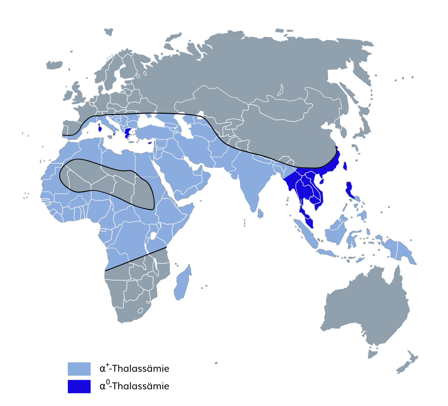 Die Alpha-Thalassämie beruht auf einer quantitativen Störung der α-Globinketten-Synthese. Durch das Defizit an α-Globinketten kommt es zur Bildung von Überschusshämoglobinen, die maßgeblich am Krankheitsbild der Alpha-Thalassämie beteiligt sind. Wie andere Hämoglobinopathien auch, tritt die Erkrankung gehäuft in Ländern auf, in denen Malaria endemisch ist und wird deshalb mit einer gewissen Resistenz gegenüber Plasmodien in Verbindung gebracht. Besonders häufig findet man die Alpha-Thalassämie in Völkern Asiens, Arabiens und Afrikas sowie den Mittelmeerländern (siehe Karte zur Prävalenz der Alpha-Thalassämie).