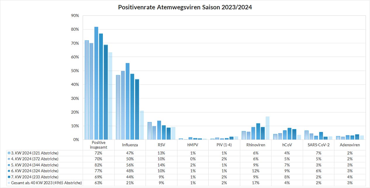 Wochenbericht der Arbeitsgemeinschaft Influenza* (AGI am RKI), KW7 2024 (Quelle: https://influenza.rki.de/)